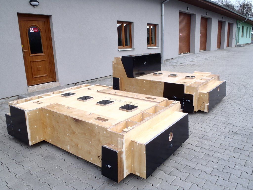 Zu den Sonderteilen zählen bearbeitete Gussteile aus Mineralbeton, mit Mineralbeton ausgefüllte Stahlschweißnähte sowie technologisch kombinierte Teile. Meistens handelt es sich bei diesen Kombinationen um einen Satz von Technologien für Karussellbearbeitung, Bearbeitung auf einer Horizontalbohrmaschine und auf einem Portalzentrum.